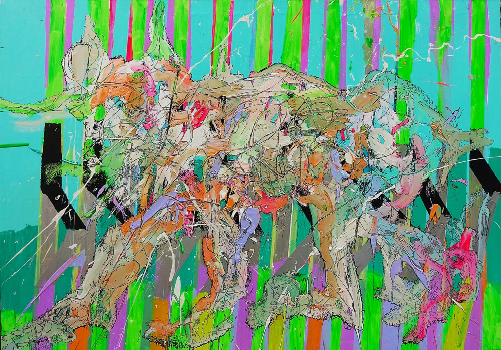彩条前的猛虎 160x120cm 布上丙烯 2022
