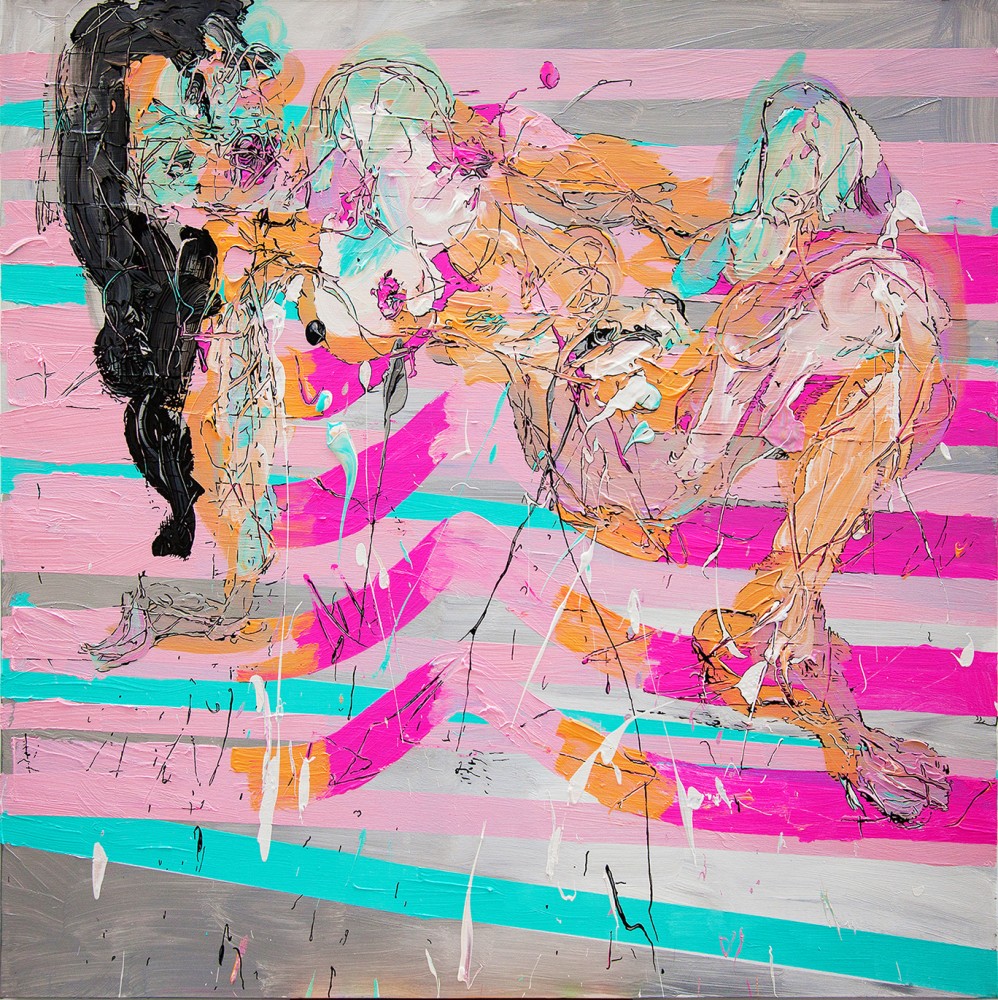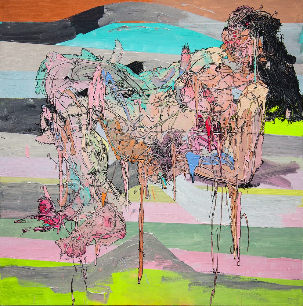凸起彩条上的人影100x100cm 布上丙烯 2···