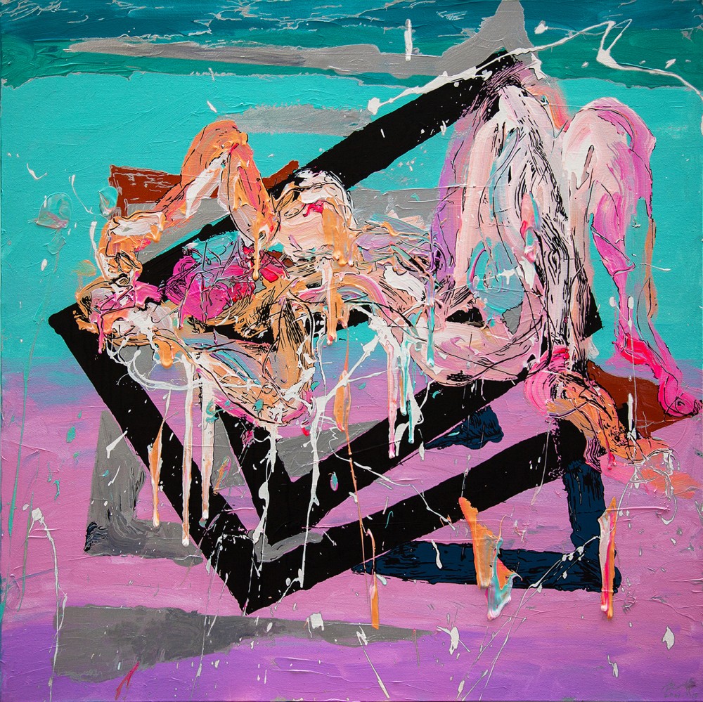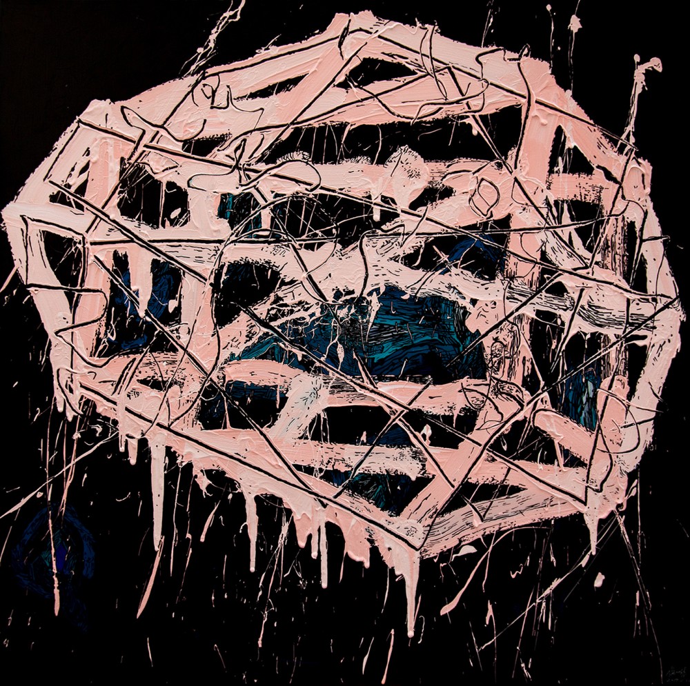 追痕-肉色多边几何体 100x100cm布上丙烯···