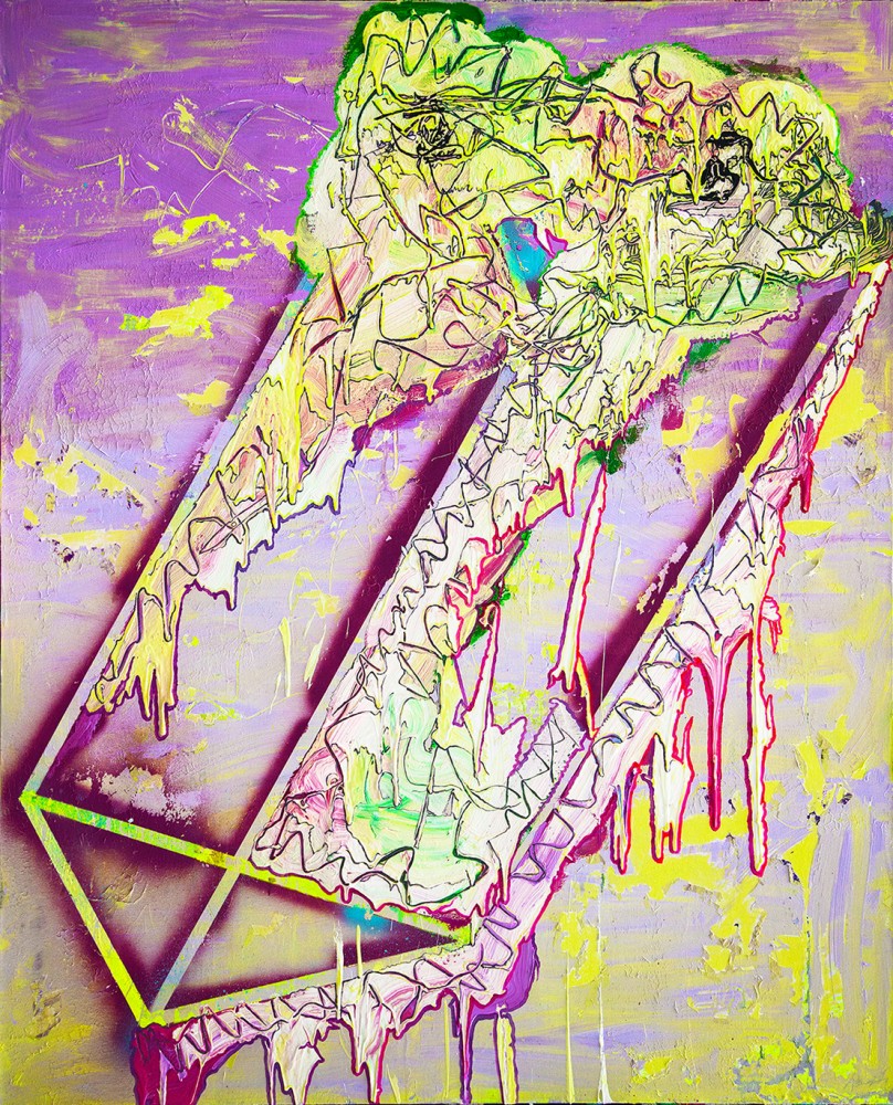 绿色几何体前的猛兽 120x100cm 布上丙烯···