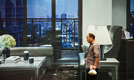 Landscape Wall, are series of snapshots of billboards and passers-by hurrying down the streets. By employing a documentary method, I presented such a scene: passers-by in the lens and advertisement landscape paintings in the city as a backdrop were put in the same image. The places where the “real events” happen seem to have been changed totally. Most of the “landscapes” in my work are relevant to the real estate development, which indicates China’s rapid capitalization and urbanization process. With the accelerating urbanization and the overwhelming business profits, not only has China changed significantly in space, but also people’s values have changed profoundly in the process of pursuit of material wealth and endless jealousy. And they are becoming greedier for resources from the nature. The conspicuous elements of luxury life and the popular strategy of decoration with green ideas in modern life shown in the Landscape Wall have revealed the changes and conflicts of social values in urbanization. The picturesque and dreamlike “natural landscape” reminds people of the fragrance of earth and fresh air that were once familiar to them. Nevertheless, they will feel anxious when looking at the images of migrant workers and ordinary people that seem embarrassed and unharmonious in front of those “elegant mansions”. Landscape Wall seems to trigger people’s query: Will modernization and urbanization bring more happiness to the general public?