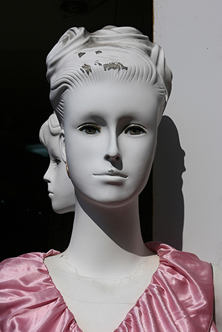 This multi-year cross-regional photography project features mannequins arrayed in commercial settings. While altering traditional framing and composition techniques of photography, I seek to stimulate a new way of viewing among the audience. From the perspective of commercial customers, the main and foremost function of mannequins is to demonstrate the values of the displayed garments as merchandises. Therefore, the vetements are designated as the subject matter and the mannequins serve as mere ancillaries. Furthermore, for the purpose of marketing and advertising, the entire look of the mannequins outweighs the portrait of the mannequins’ faces. Distinct from the conventional view held by commercial photographers, amateur enthusiasts and professional artists, this project directs the focus of the audiences back towards the mannequins through the standardized and successive framing techniques used in real-person portrait shootings. Surrounded by millions of self-portraits produced and consumed throughout social media, the non-human portrait of mannequins becomes a distinctive spectacle in the contemporary social context that accentuates the routine, commercial and political values of photographic portraits. Casting light on the crux of the narratives, the extension of the collective aesthetic and the important role played by the humanities in the development of modern society, this project presents the portraits of mannequins.