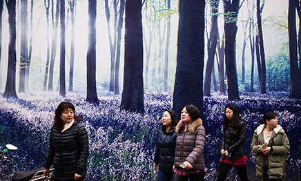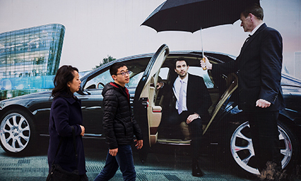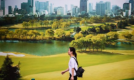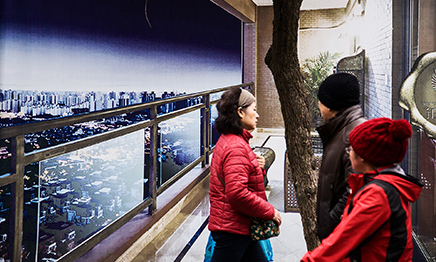 Landscape Wall, are series of snapshots of billboards and passers-by hurrying down the streets. By employing a documentary method, I presented such a scene: passers-by in the lens and advertisement landscape paintings in the city as a backdrop were put in the same image. The places where the “real events” happen seem to have been changed totally. Most of the “landscapes” in my work are relevant to the real estate development, which indicates China’s rapid capitalization and urbanization process. With the accelerating urbanization and the overwhelming business profits, not only has China changed significantly in space, but also people’s values have changed profoundly in the process of pursuit of material wealth and endless jealousy. And they are becoming greedier for resources from the nature. The conspicuous elements of luxury life and the popular strategy of decoration with green ideas in modern life shown in the Landscape Wall have revealed the changes and conflicts of social values in urbanization. The picturesque and dreamlike “natural landscape” reminds people of the fragrance of earth and fresh air that were once familiar to them. Nevertheless, they will feel anxious when looking at the images of migrant workers and ordinary people that seem embarrassed and unharmonious in front of those “elegant mansions”. Landscape Wall seems to trigger people’s query: Will modernization and urbanization bring more happiness to the general public?