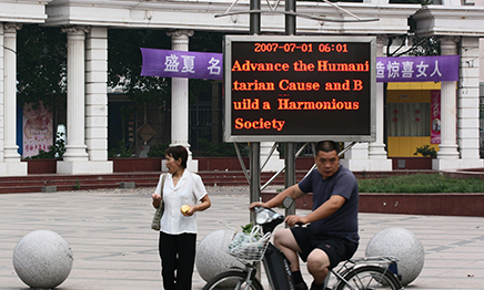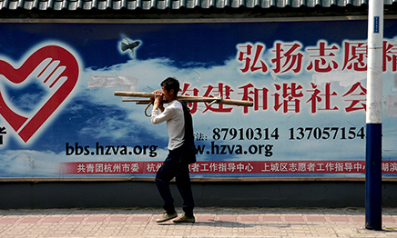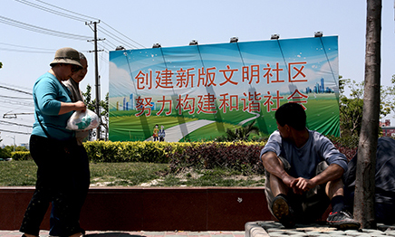 而“和谐”是我们每个人正在经历的“当下历史”,它是“发展”的下文,因而也与“发展”置于同一个语境。“和谐”作为另一个典型的语言事件,更多地维系于当下中国的社会问题,以及解决问题的一些“策略”。这些问题是属于“发展”中的问题,或者是“过度发展”遗留下来的问题,而解决问题的方法是重提价值观和中国传统的道德伦理文化。透过镜头,我们可以看到,在《关键词——和谐》背景下,社会各个阶层人们所呈现出的不同表情,看到一些“和谐”与“不和谐”的滑稽并置,看到一段“繁荣昌盛”国家编年史下的一个又一个鲜活的民间“野史”。
